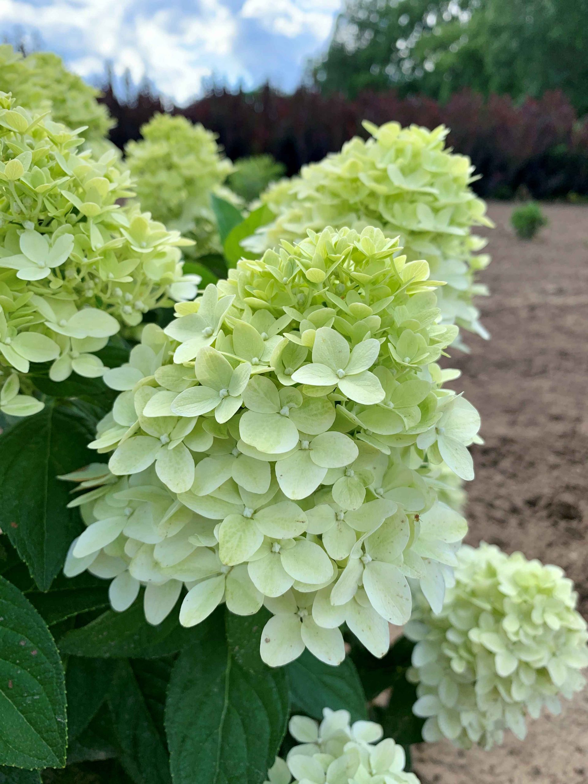 Immense, porcelain-white flower heads appear backlit as if to create a surreal glow of soft, yellow flowers above tall, erect stems. The habit is robust, but compact, only 4-5′, with dense, lacy panicles that fade pink as they mature.