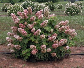 In early summer, ‘Ruby Slippers’ is covered with 9 inch long inflorescences that are held upright above the foliage. Flowers open white, but quickly turn pale pink and then deepen to rose. Burgundy fall color.